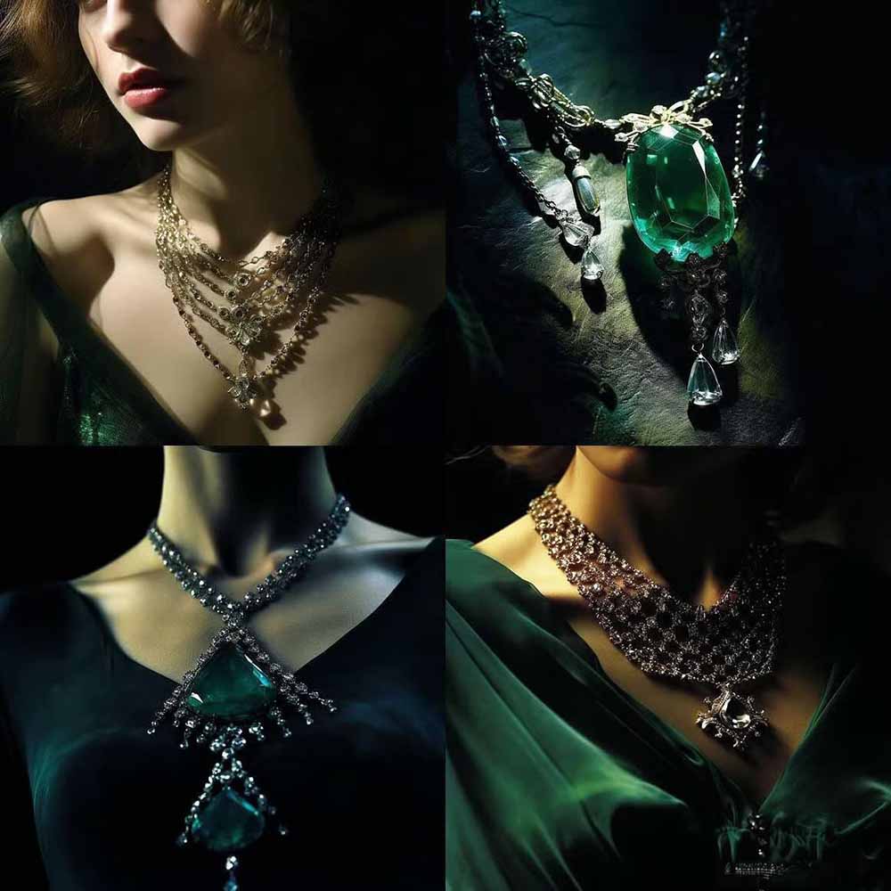 460+专业Midjourney珠宝摄影AI提示词+成效果图,戒指/项链/耳环/手链/宝石/及奢侈配饰等全品类-摇钱树